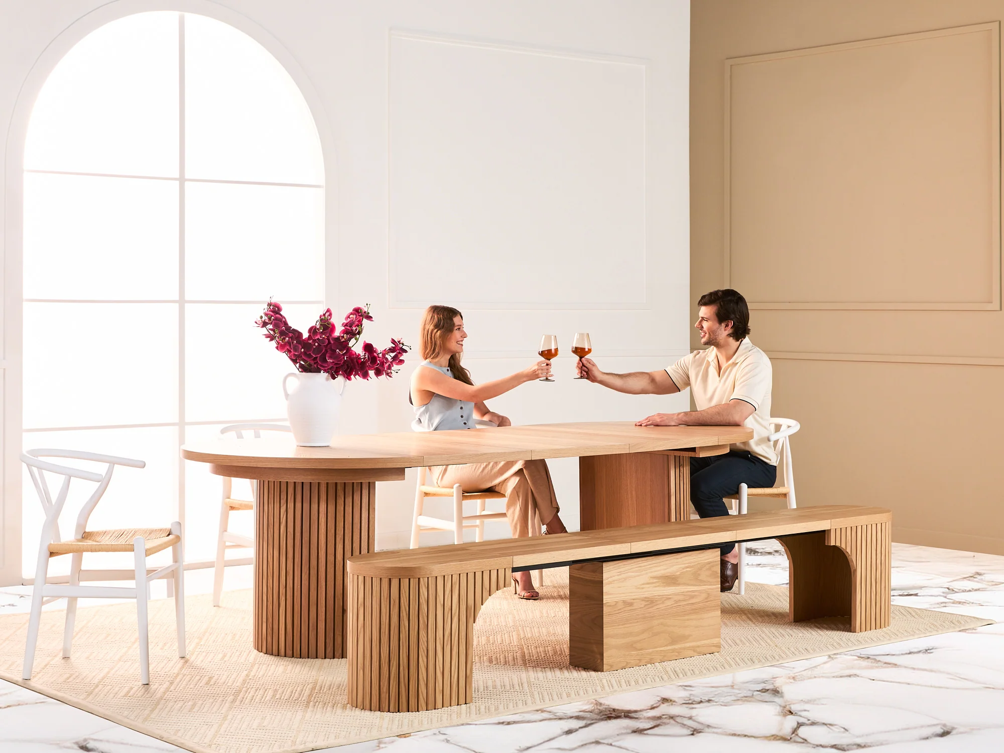 - Seats 2 to 12 guests, extending from 18" console to 118" banquet table in seconds.
